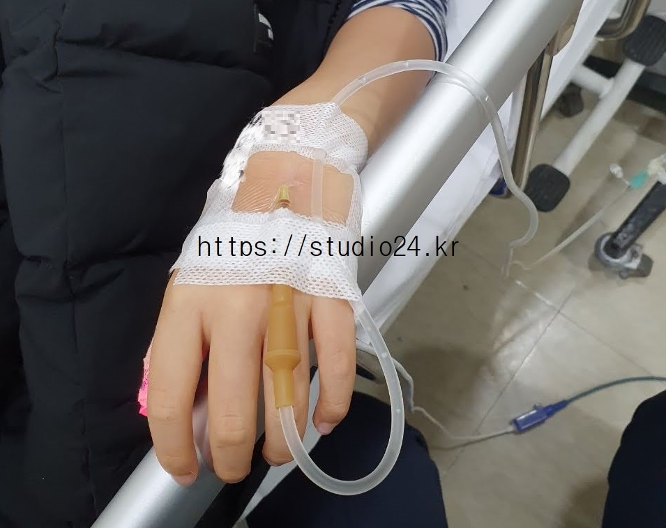 수액과 해열제를 같이 맞고, 체온은 정상으로 돌아왔습니다.