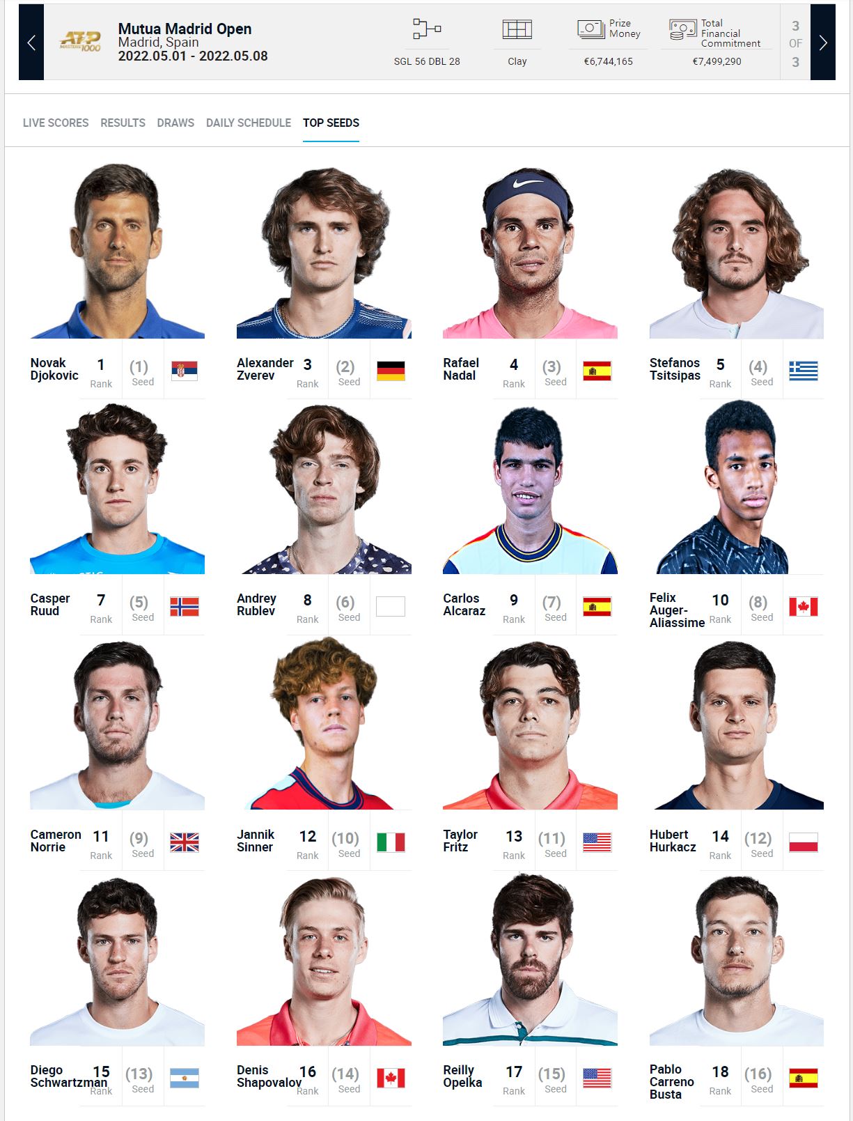 마드리드 오픈 TOP SEEDS 선수가 대단합니다.