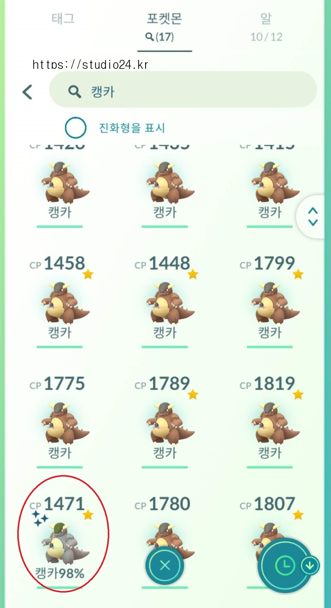 이제 반짝 프렌드 되면 색이 다른 캥카를 교환해서 반짝 캥카를 만들어야겠습니다.