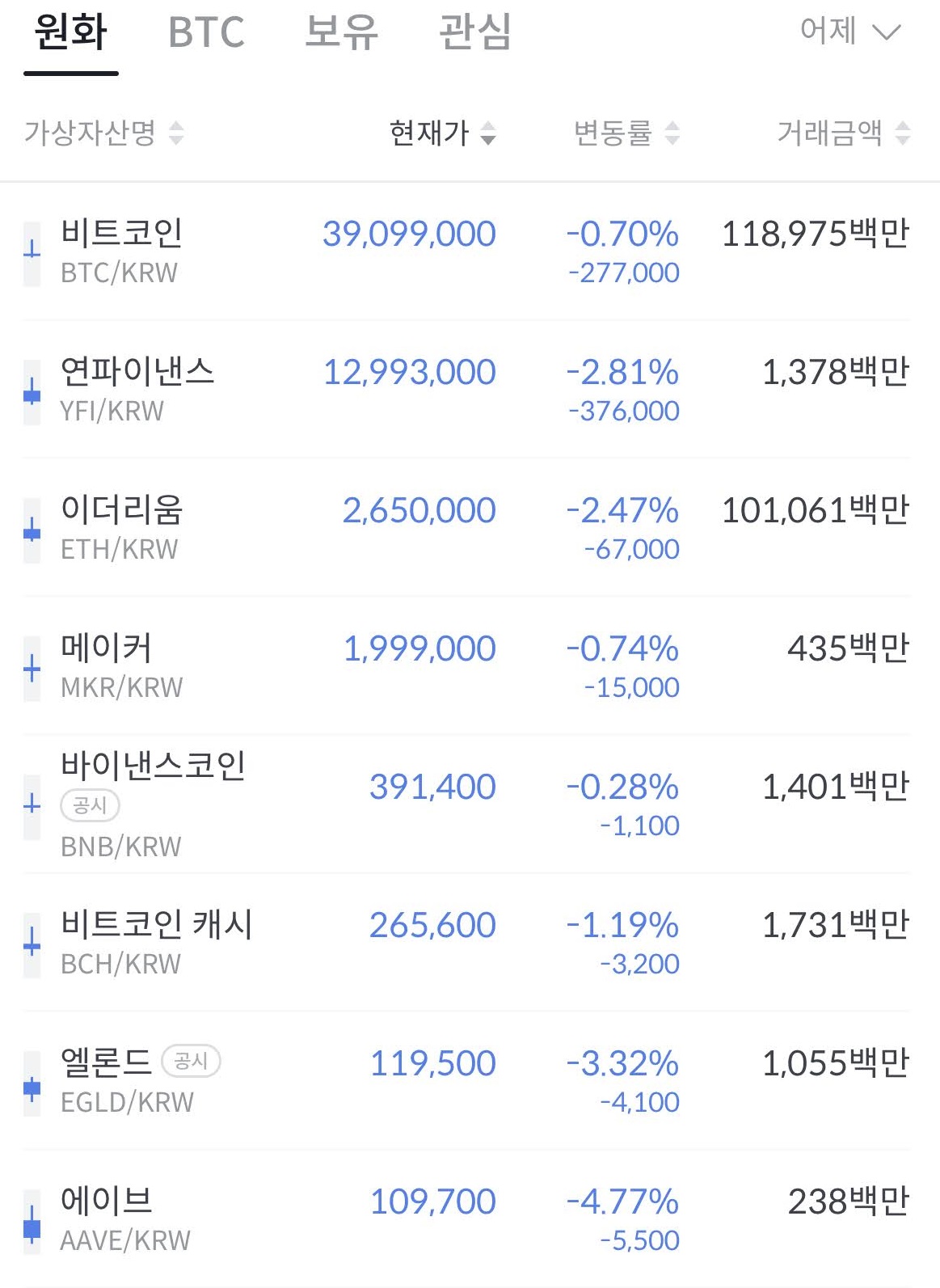 내가 보유한 코인은 어떻게 되었나 확인해 보았습니다.