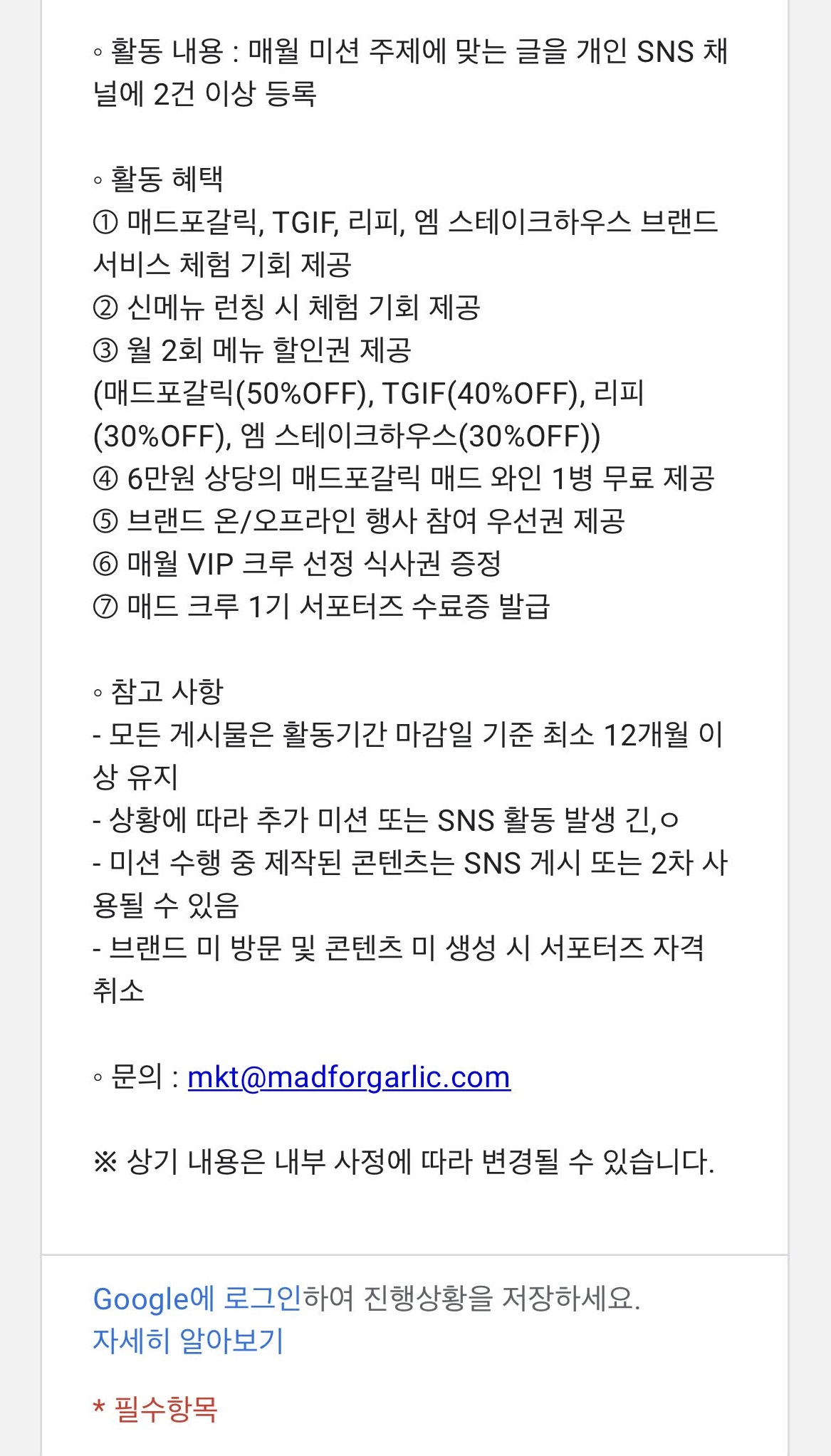매드포갈릭 서포터즈 신청 완료했습니다.