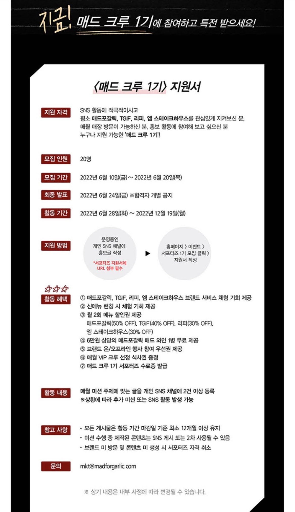 매드포갈릭 매드 크루 1기 모집 및 지원
