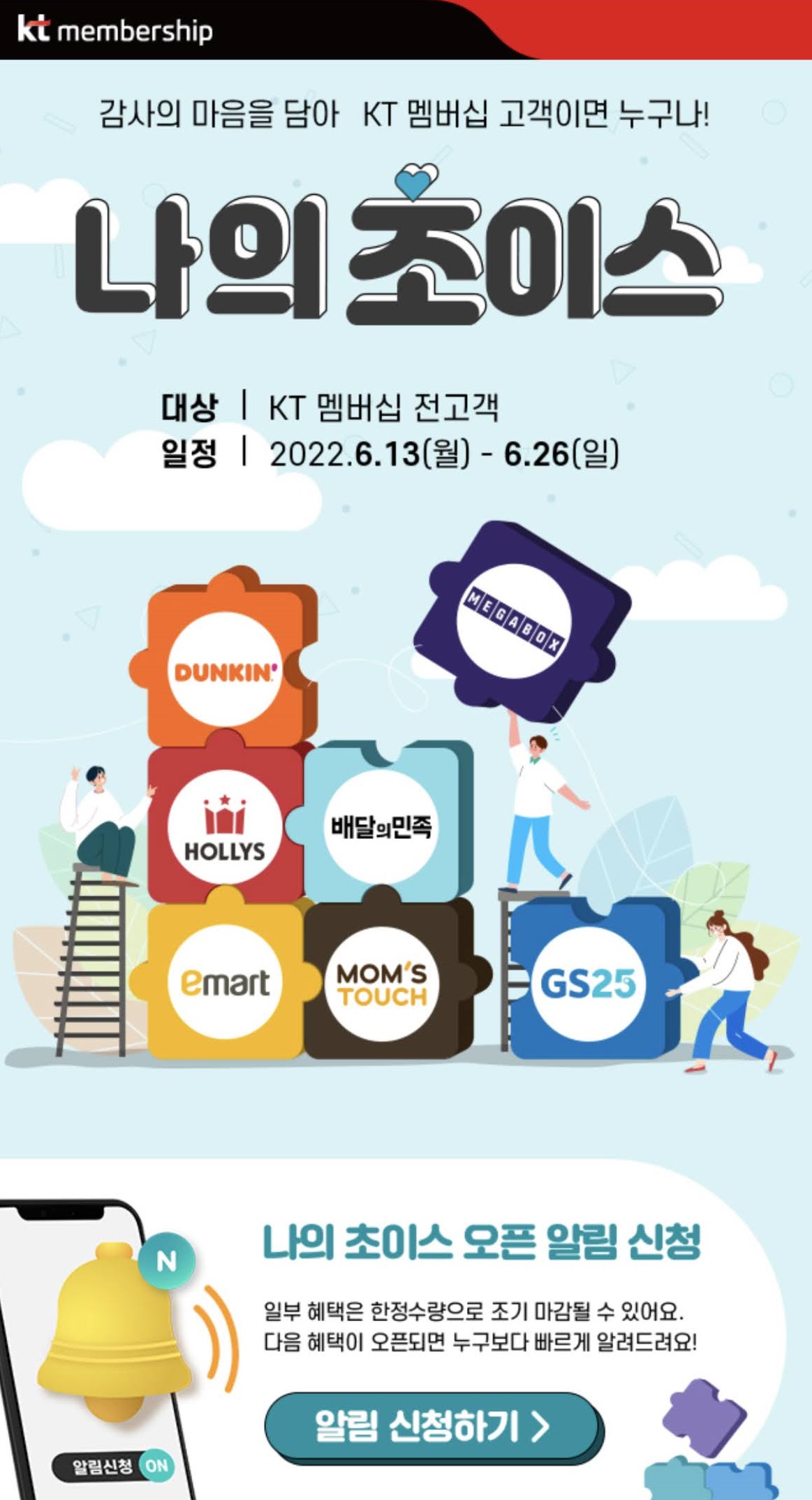 KT를 사용하시는 분들은 지금 신청하세요.