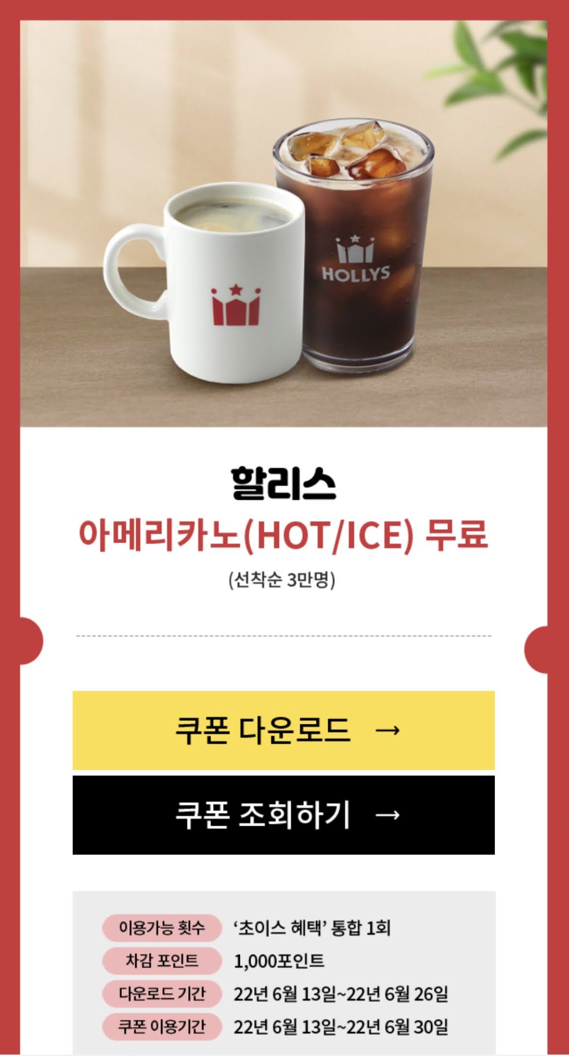할리스 아메리카노 무료