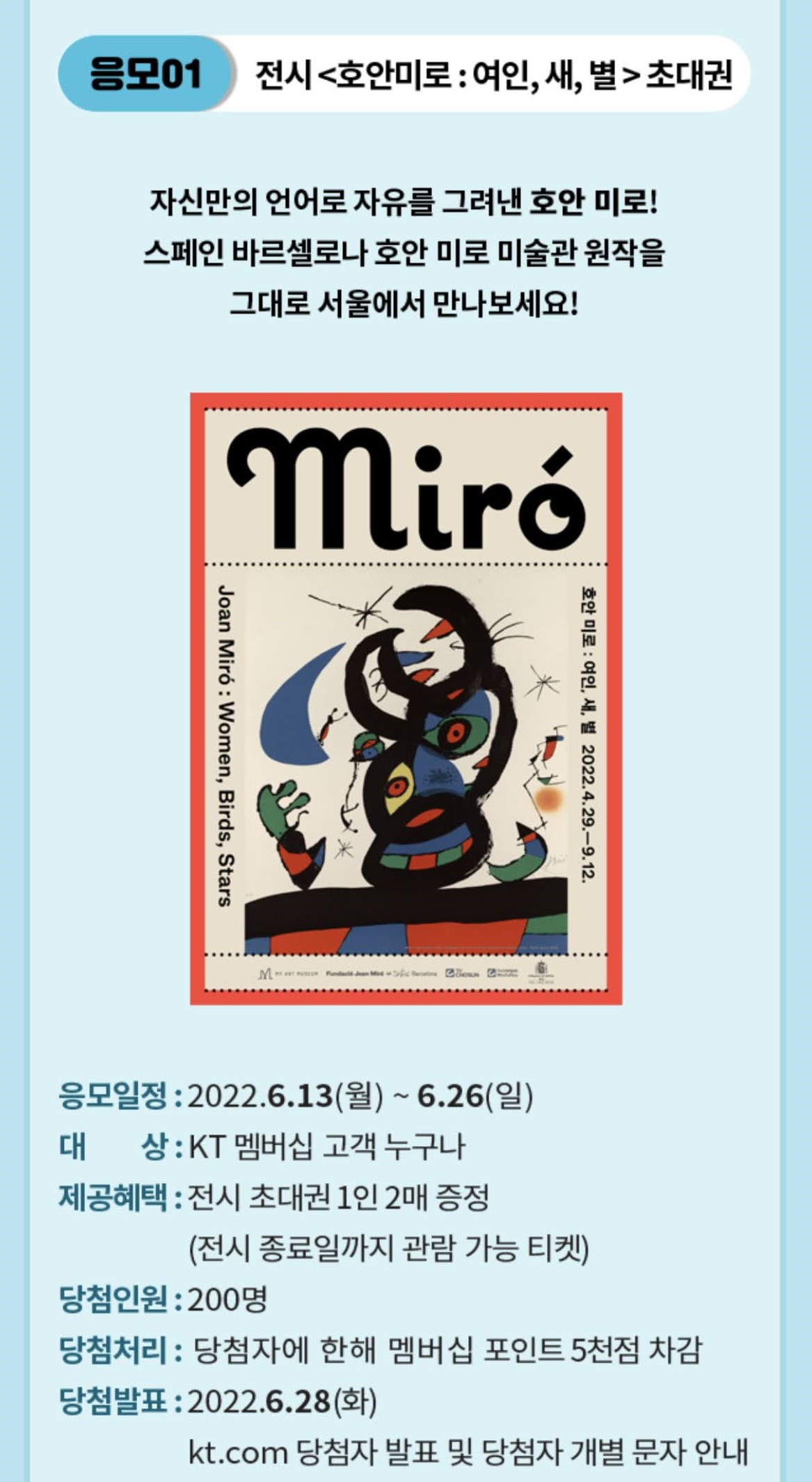 전시 호안미로:연인, 새, 별 초대권