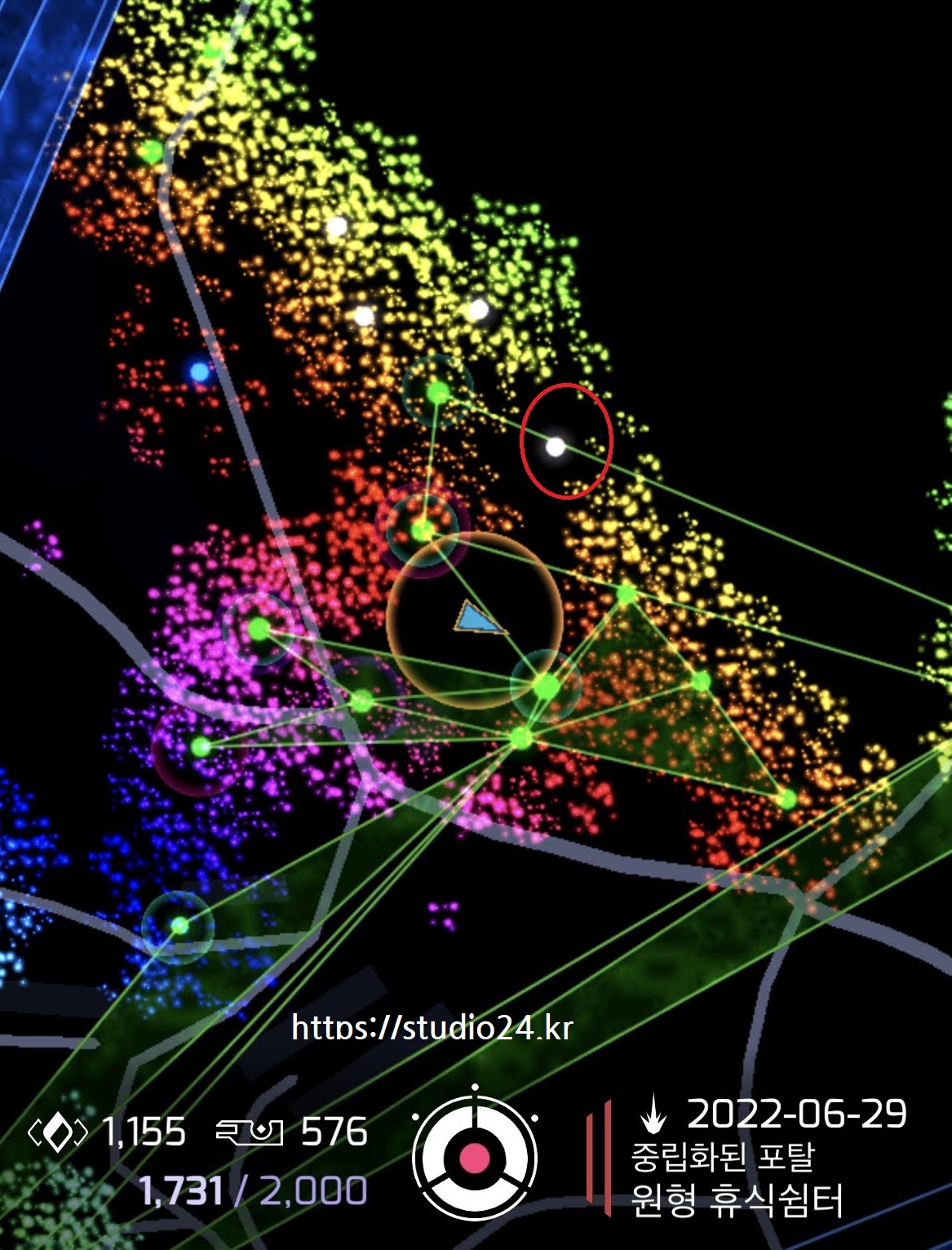 딱 한 발짝 차이로 해당 셀에 2개가 중복되니 포켓스탑에는 반영이 안되는거 같습니다.
