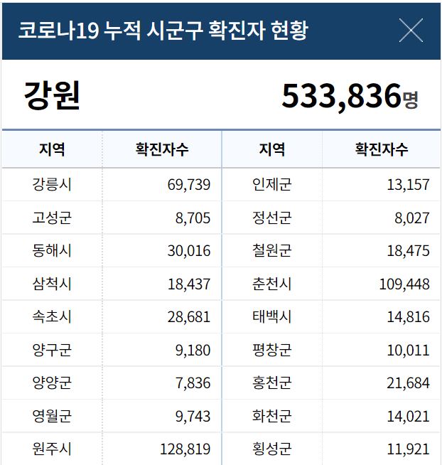 강원도 확진자 현황