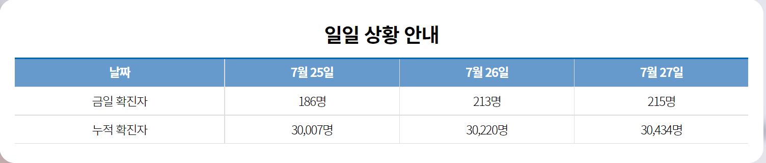 속초, 코로나19 확진자 현황 2022년 7월 27일 215명