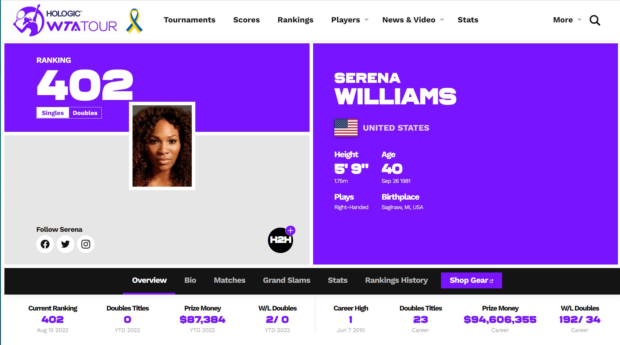 서브 에이스 및 더블폴트 모두 윌리엄스가 높았습니다.