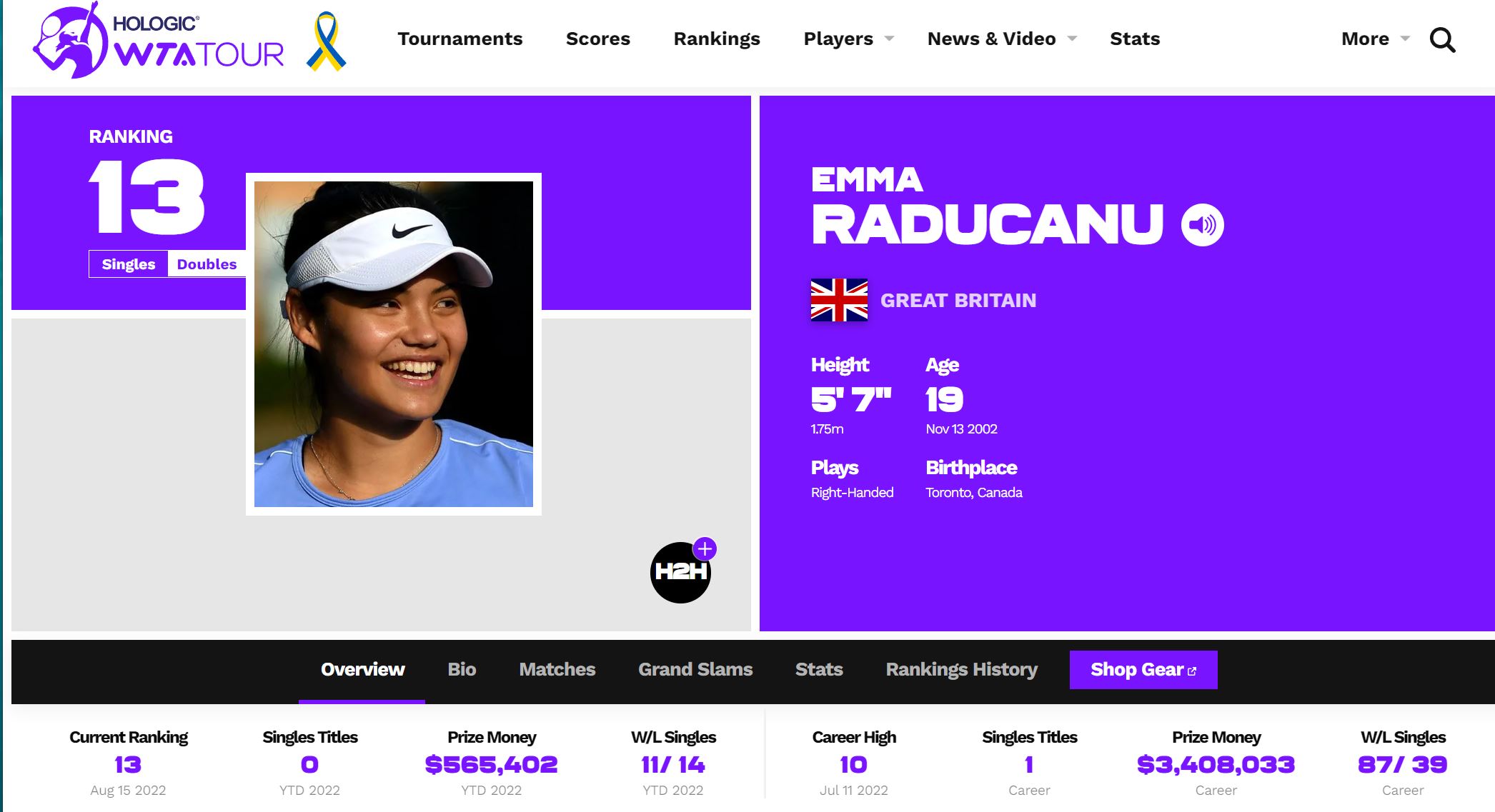 테니스, WTA1000 2022 Western & Southern Open 윌리엄스 VS 라두카누
