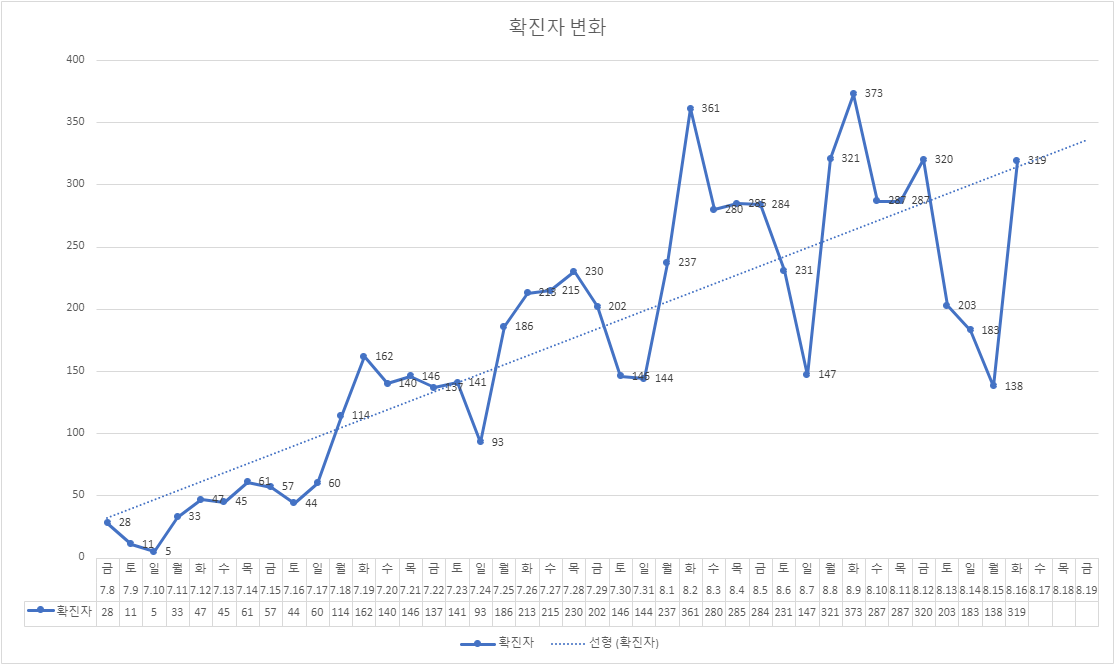 하지만, 바로 다음날 319명이 확진되었습니다.