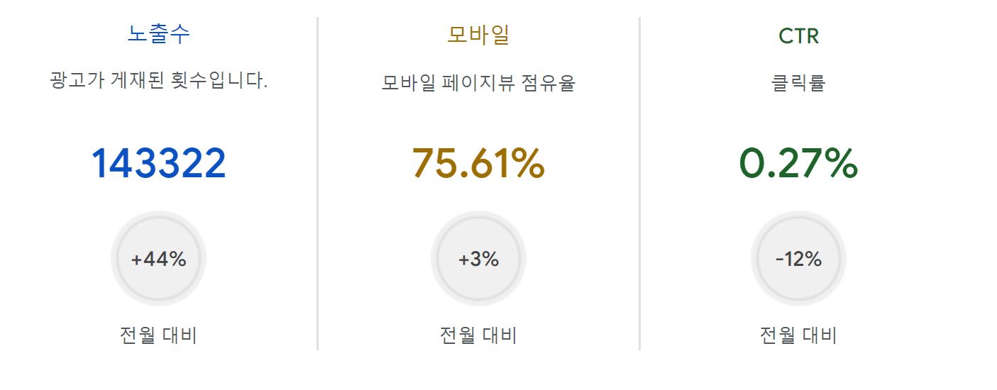높은 검색 기록에 광고 클릭이 아쉬운 결과입니다.