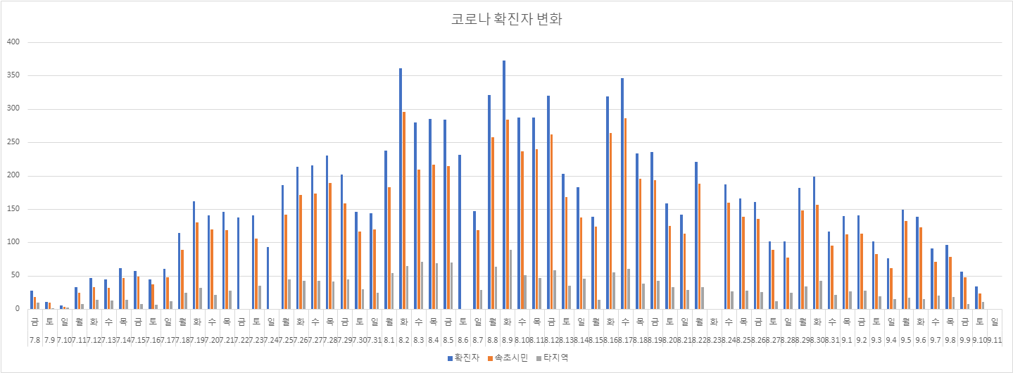 | 일자 | 요일 | 확진자 | 속초시민 | 타지역 |