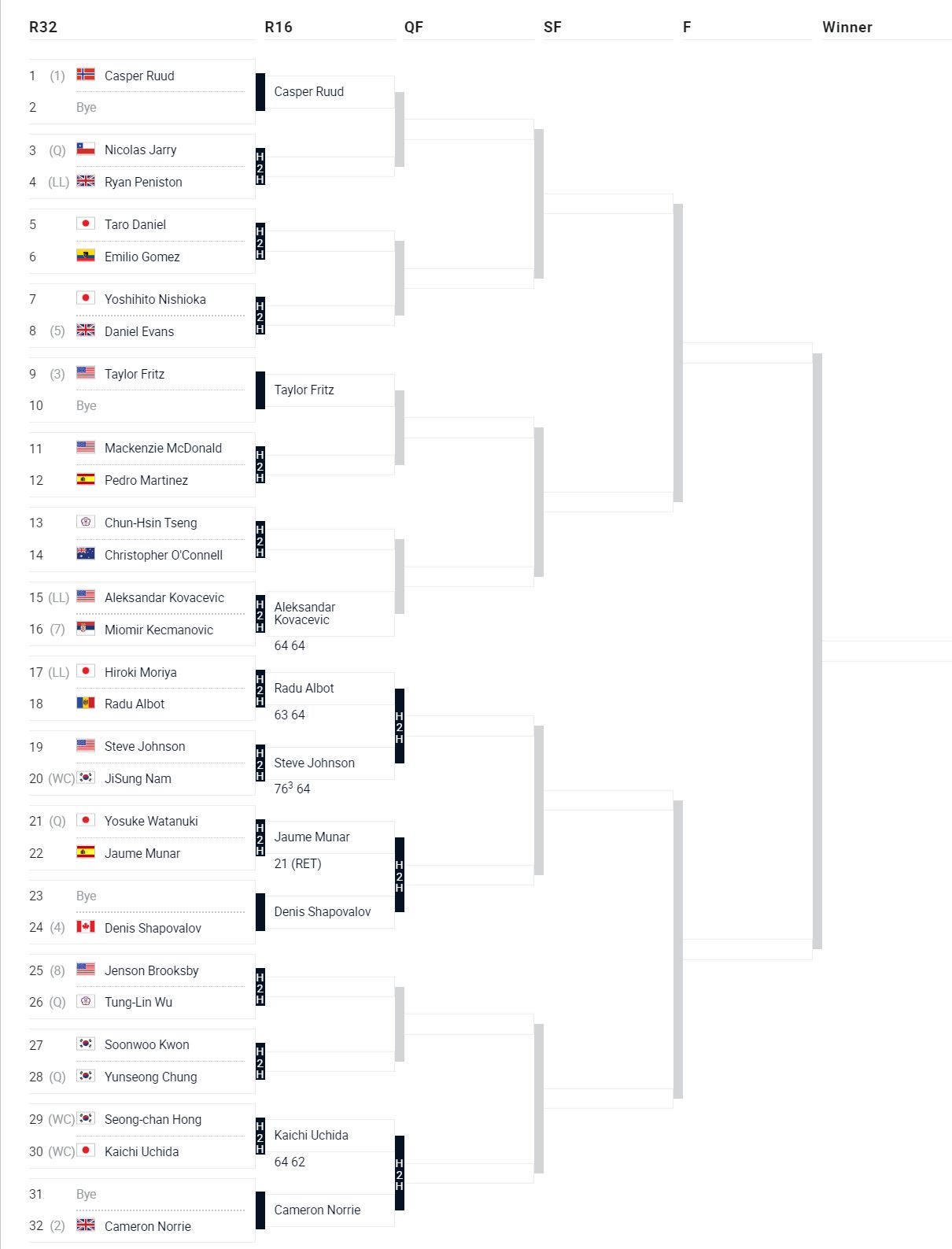 샤포발로프는 R.알보트와 S.존슨 경기의 승자와 8강에서 붙습니다.