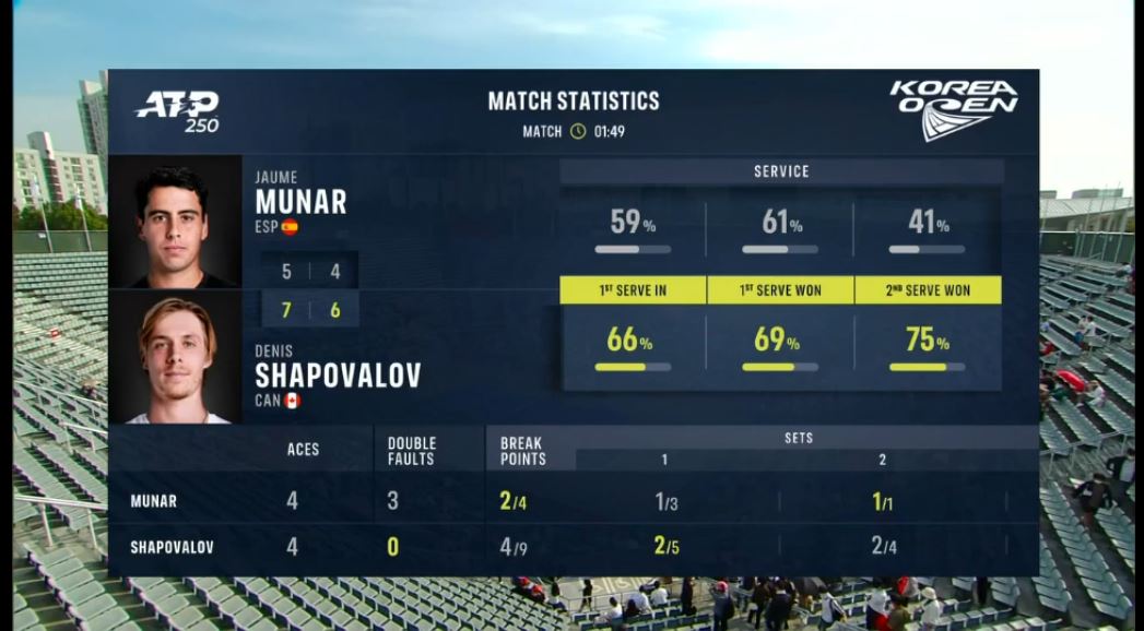 권순우 선수와 연습 경기를 하던 무나르 선수가 샤포발로프를 상대하게 됩니다.