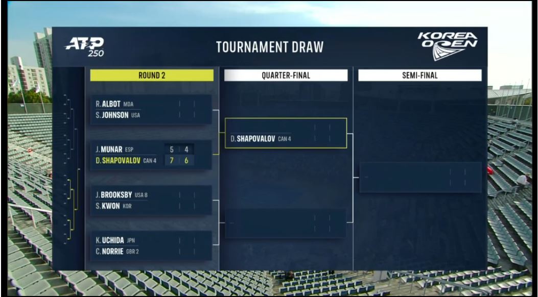 2-6, 6-2로 샤포발로프가 8강도 승리해서 4강에 진출합니다.