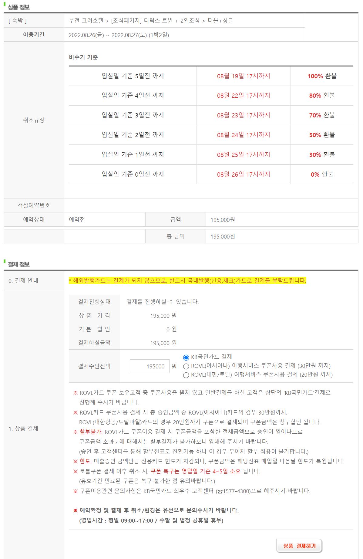 모든 예약과 취소는 PC로 가능했고, 가끔 결제에서 무한 반복으로 결제가 되지 않았으나, 최근 KB 페이로 결제하니 편하게 결제되었습니다.