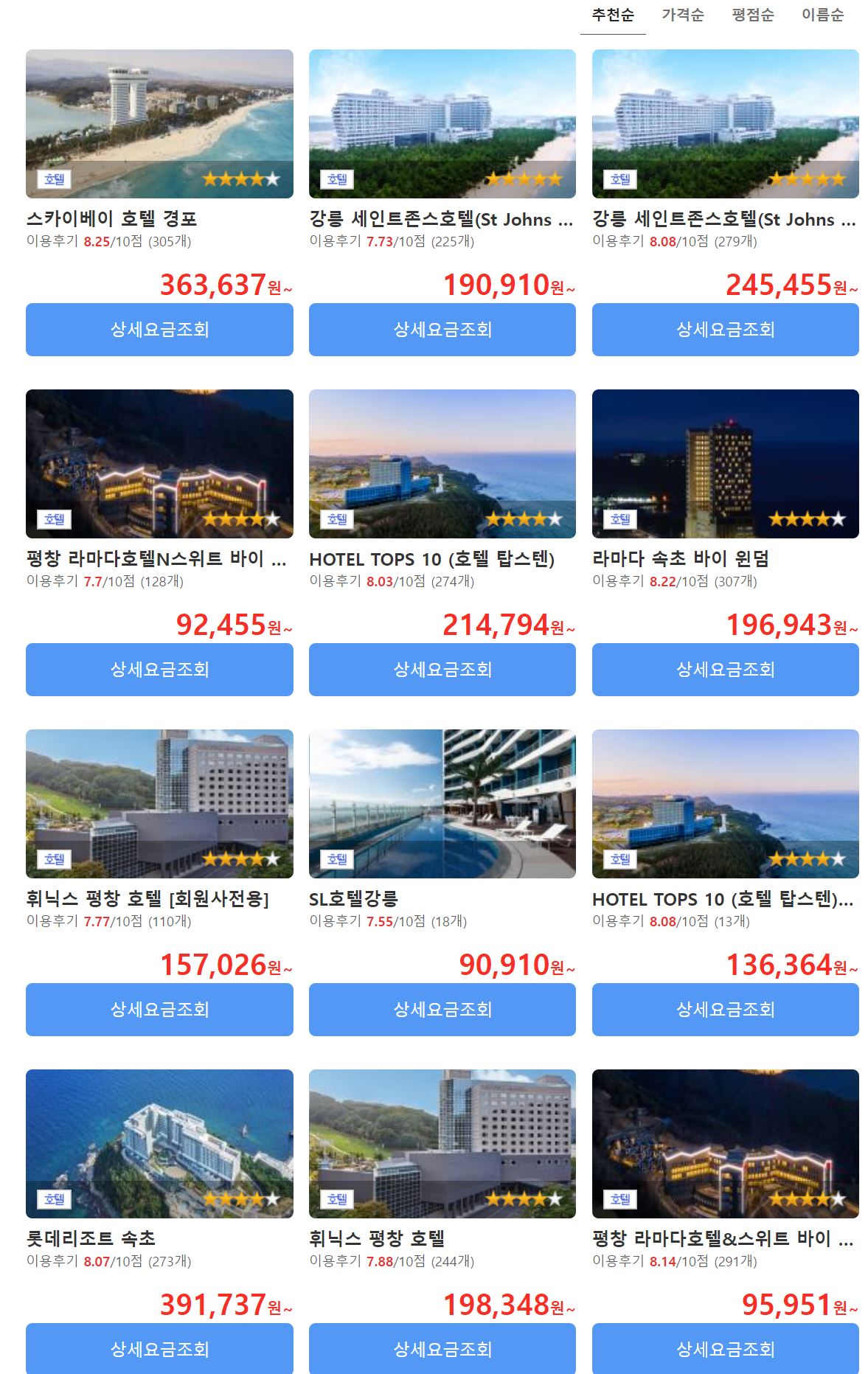 강릉, 속초 숙소도 가격이 너무 비쌉니다.