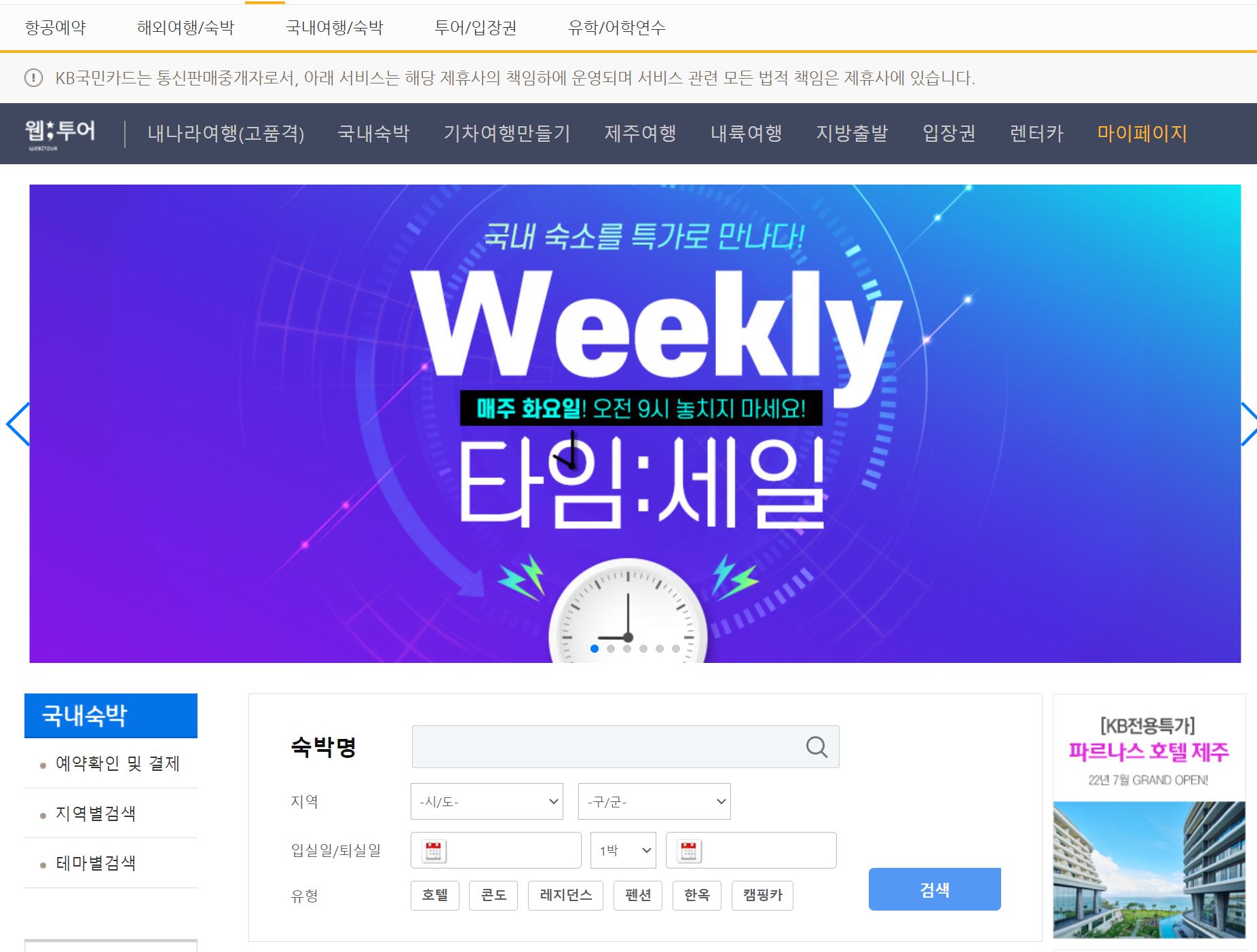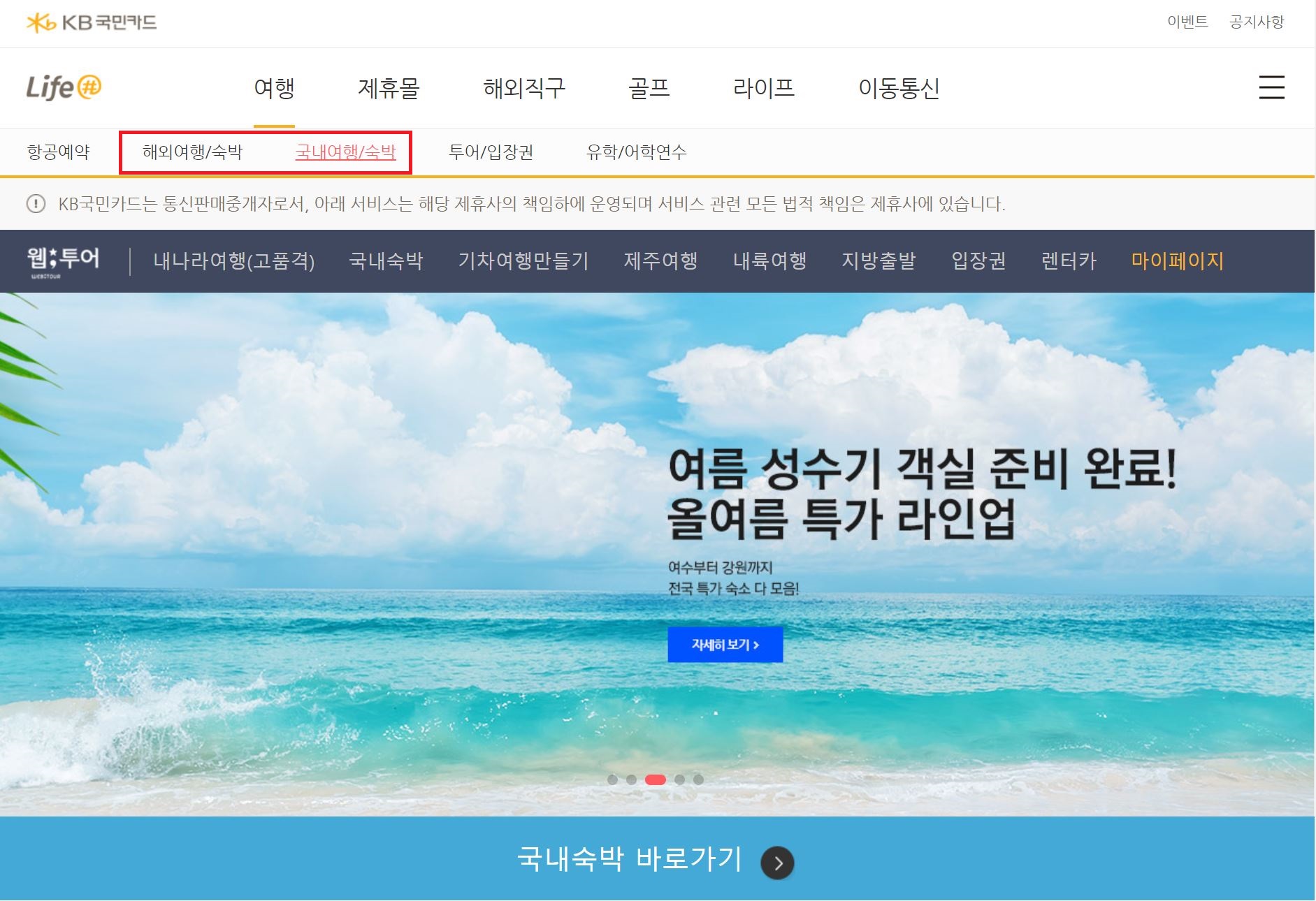 국민카드 여행 -> 국내여행 -> 국내숙박