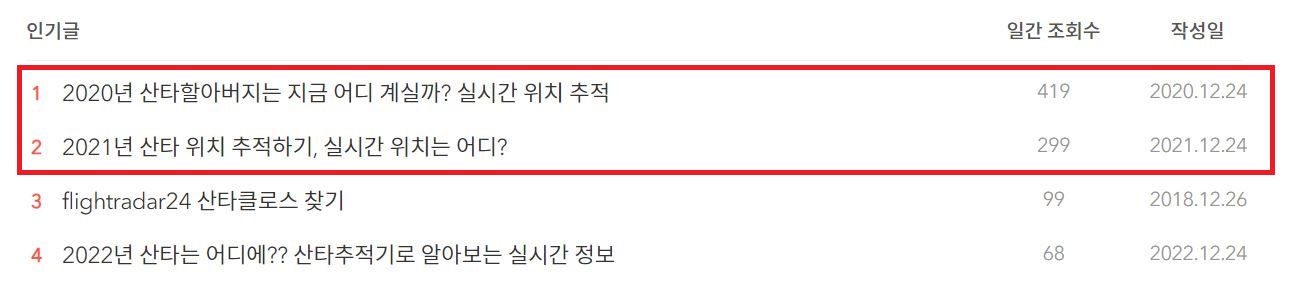 검색 유입을 살펴보니 산타할아버지 위치 추적이 관련되어 있었습니다.