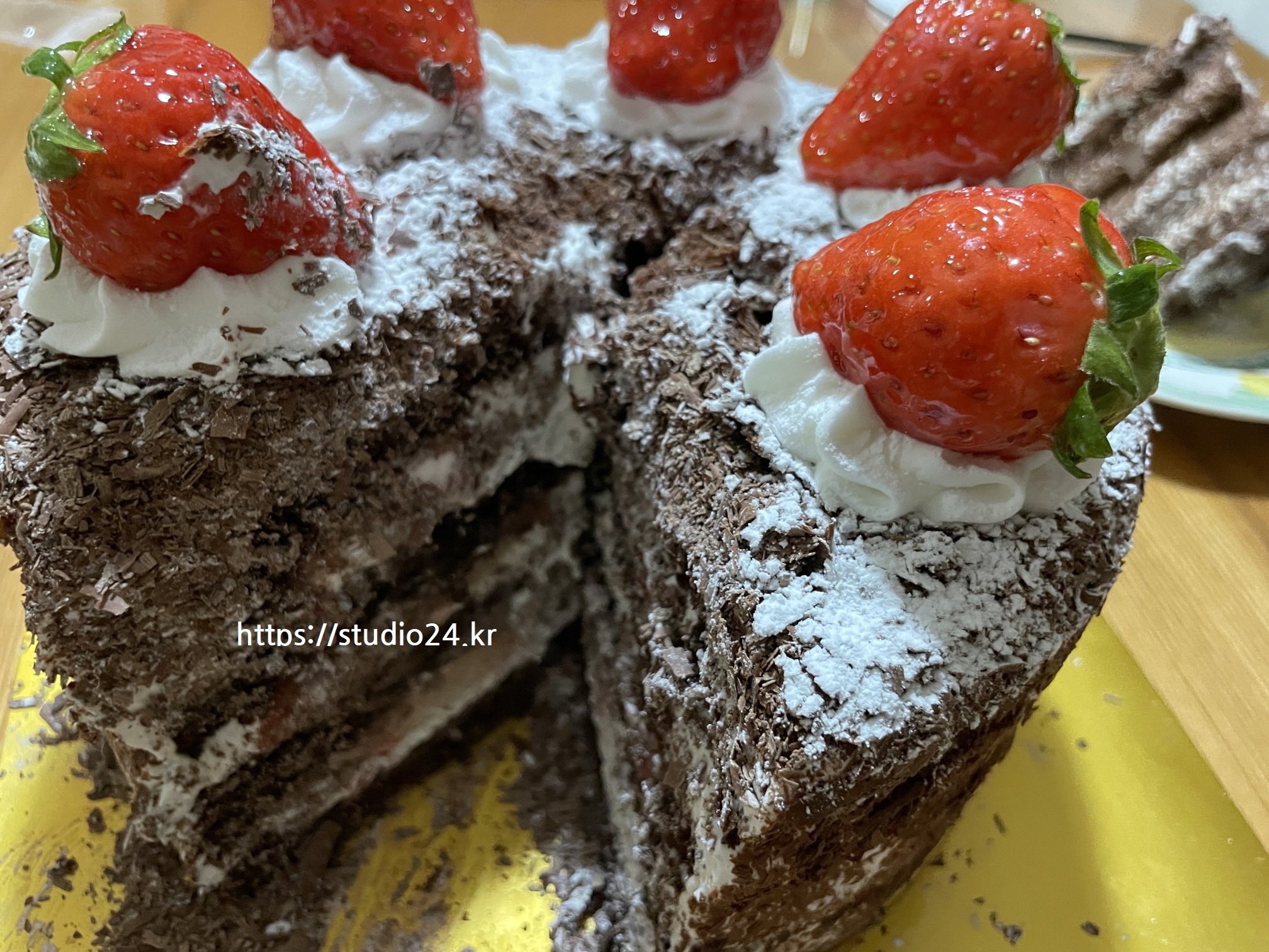 2023년 크리스마스 케이크는 초코딸기 생크림입니다.