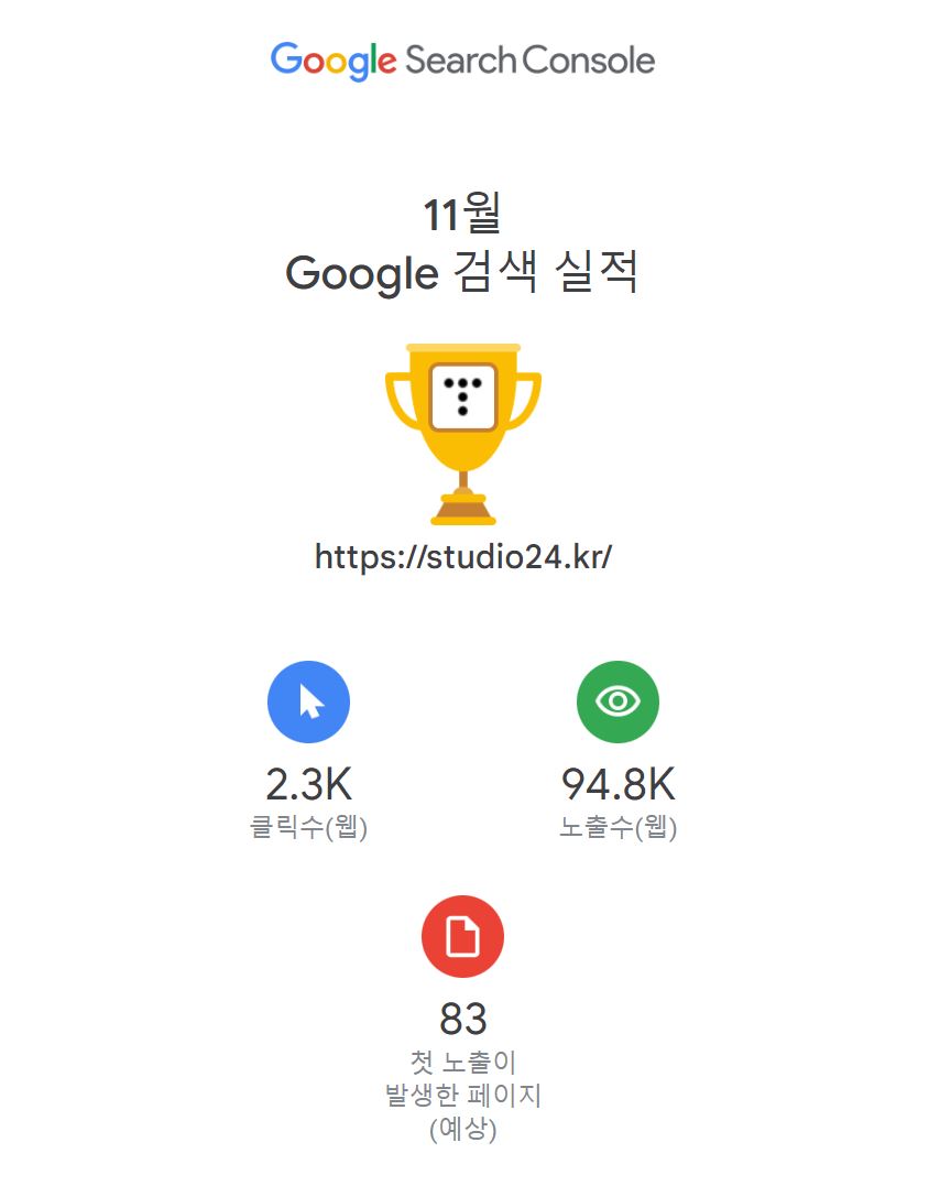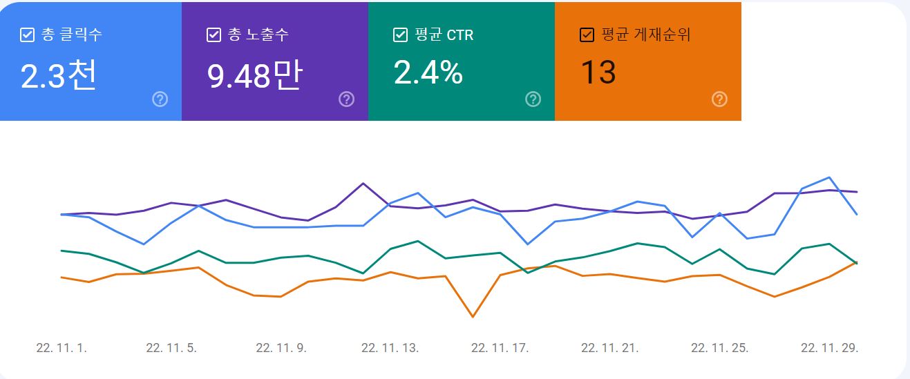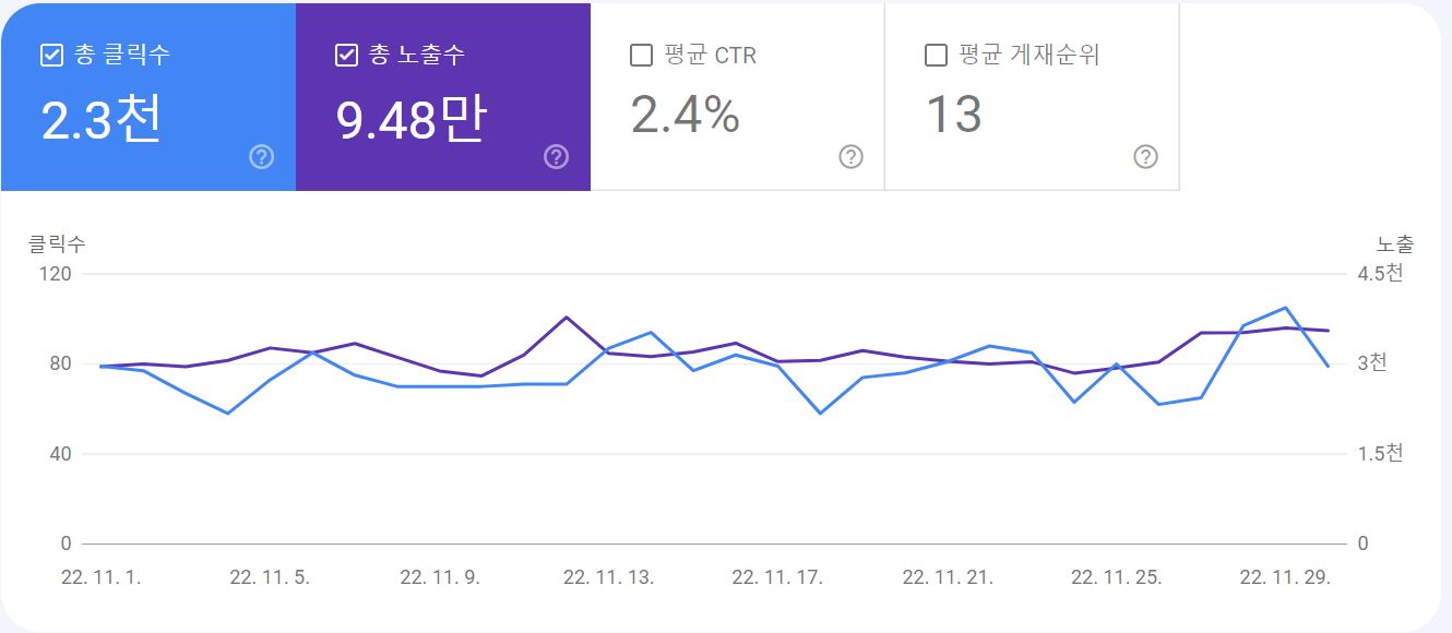 통계, Google Search Console, 2022년 11월 검색 실적