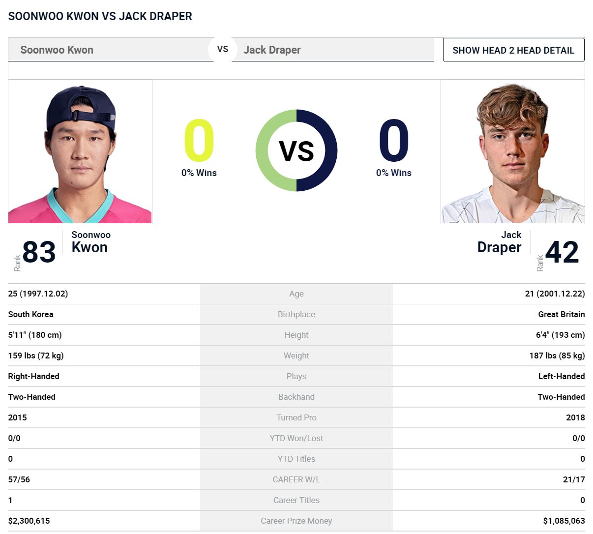 본선 1회전 상대는 잭 드레이퍼(영국, 42위) 선수로 21살입니다.