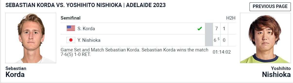 테니스, ATP250 2023 Adelaide International 1 니시오카 VS 포피린