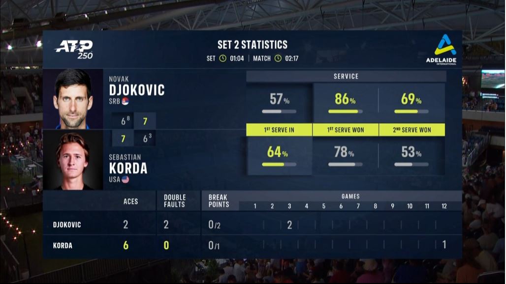 테니스, ATP250 2023 Adelaide International 1 결승 조코비치 VS 코르다