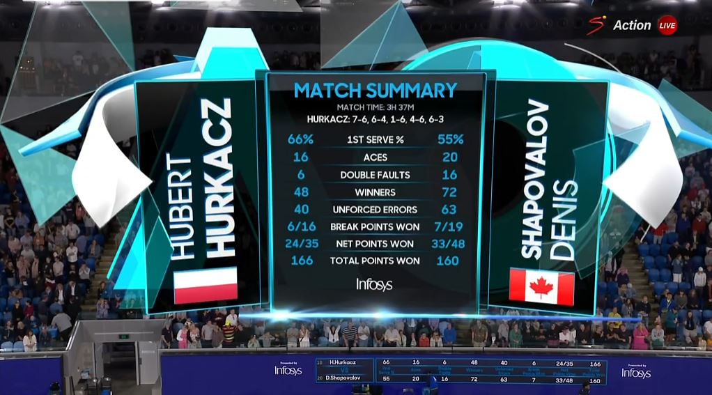 3세트와 4세트 샤포발로프의 역전이 시작되면서 좋은 결과를 예상했지만, 결국 5세트 6-3으로 졌네요.