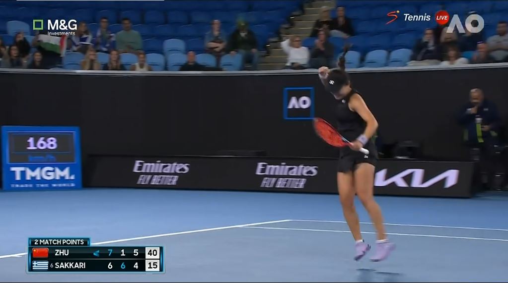 시드 6번 사카리 선수가 중국의 주린 선수에게 졌습니다.
