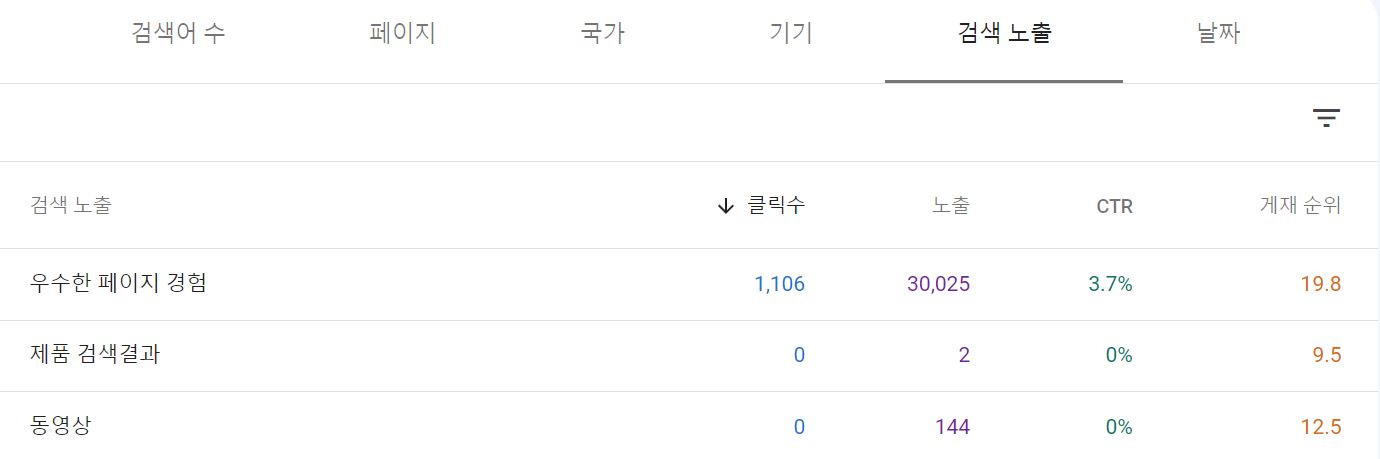 전 월과 비교해서 클릭수와 검색 노출이 증가되었습니다.