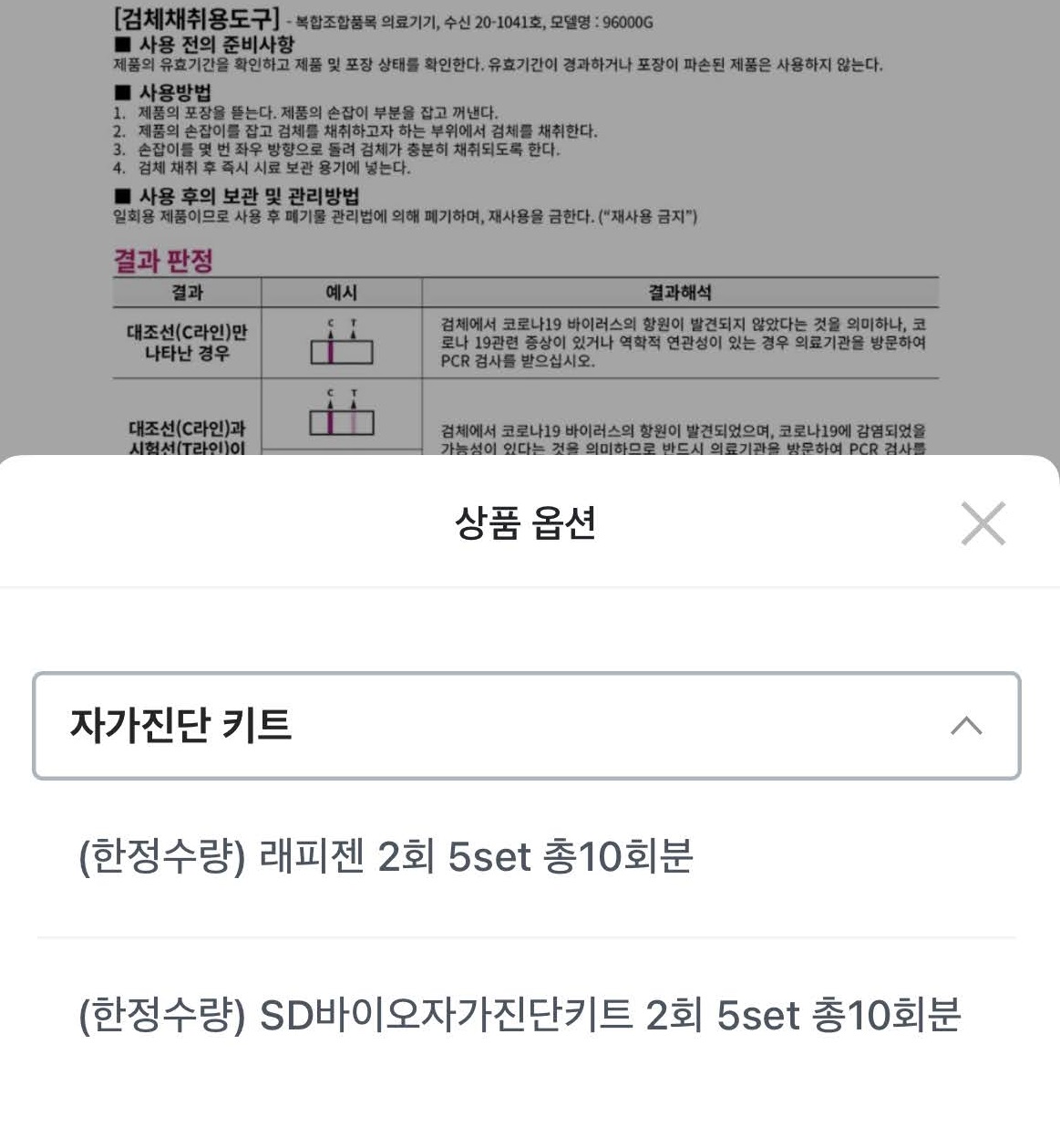 래피젠 상품과 SD바이오센서 제품 중 SD 제품을 구입했어요.