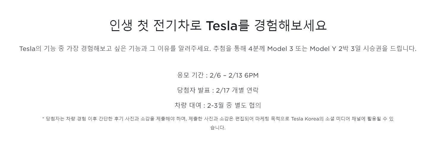 테슬라 코리아에서 2박 3일 시승 이벤트를 진행하고 있습니다.