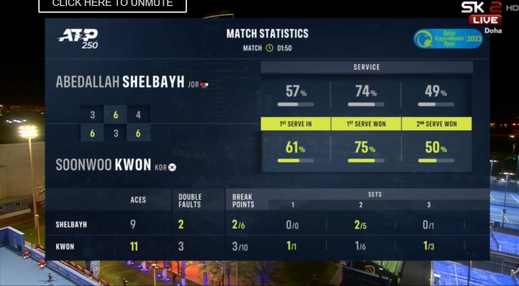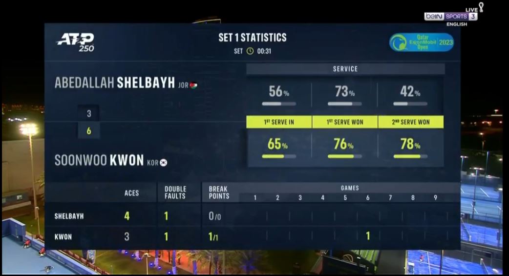 테니스, ATP250 2023 Qatar ExxonMobil Open 32강 권순우 VS 쉘바이