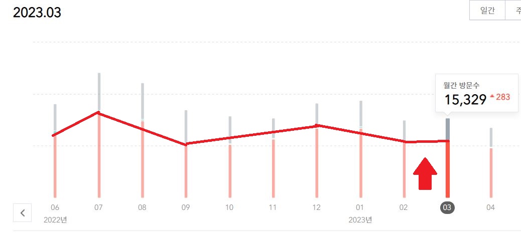 방문자수는 전월 대비 283명 증가되었습니다.