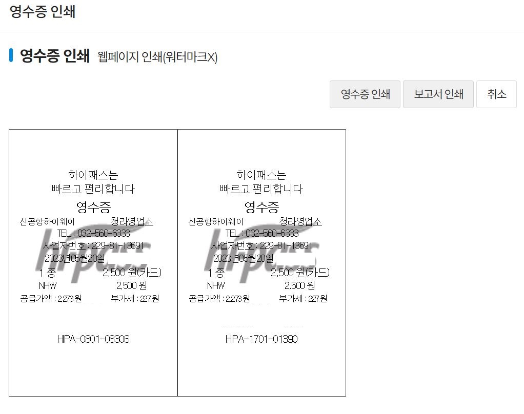 영수증 전체 출력을 클릭하면 아래와 같이 영수증을 확인할 수 있었습니다.
