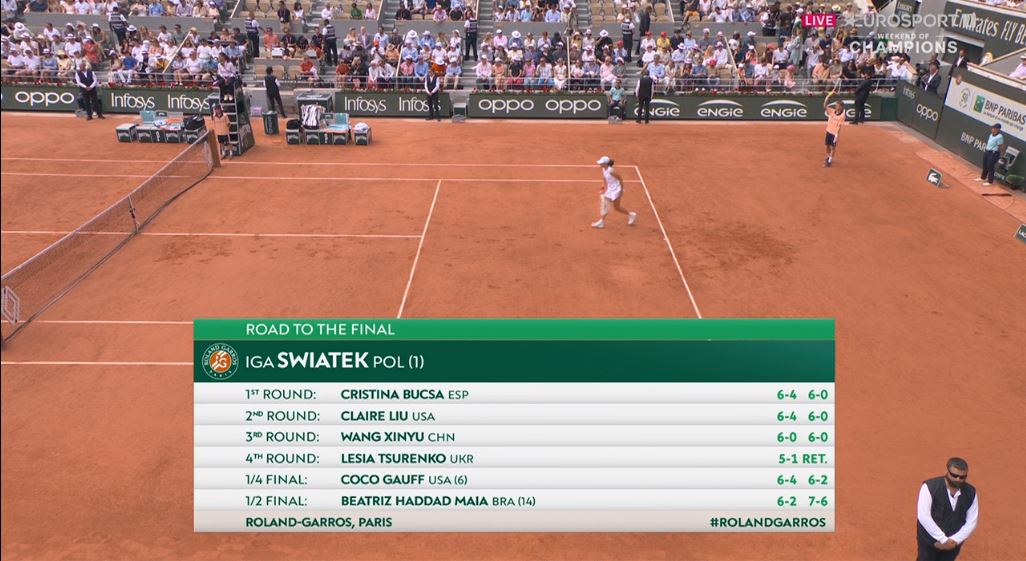 테니스, 2023 프랑스 오픈 여자 결승 이가 시비옹테크 vs 카롤리나 무호바