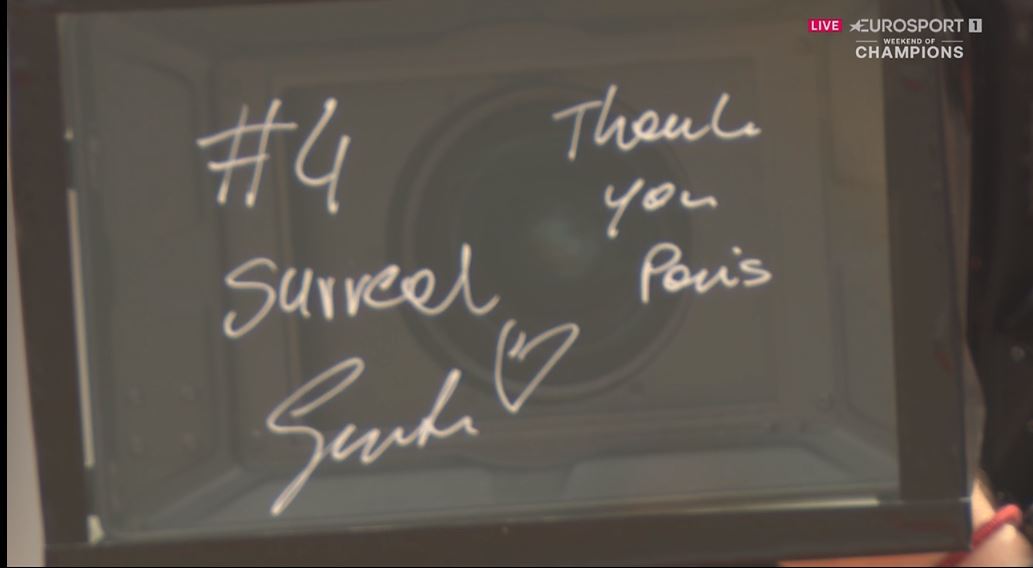 관중석으로 올라가 가족과 코치와 승리의 기쁨을 나누었습니다.