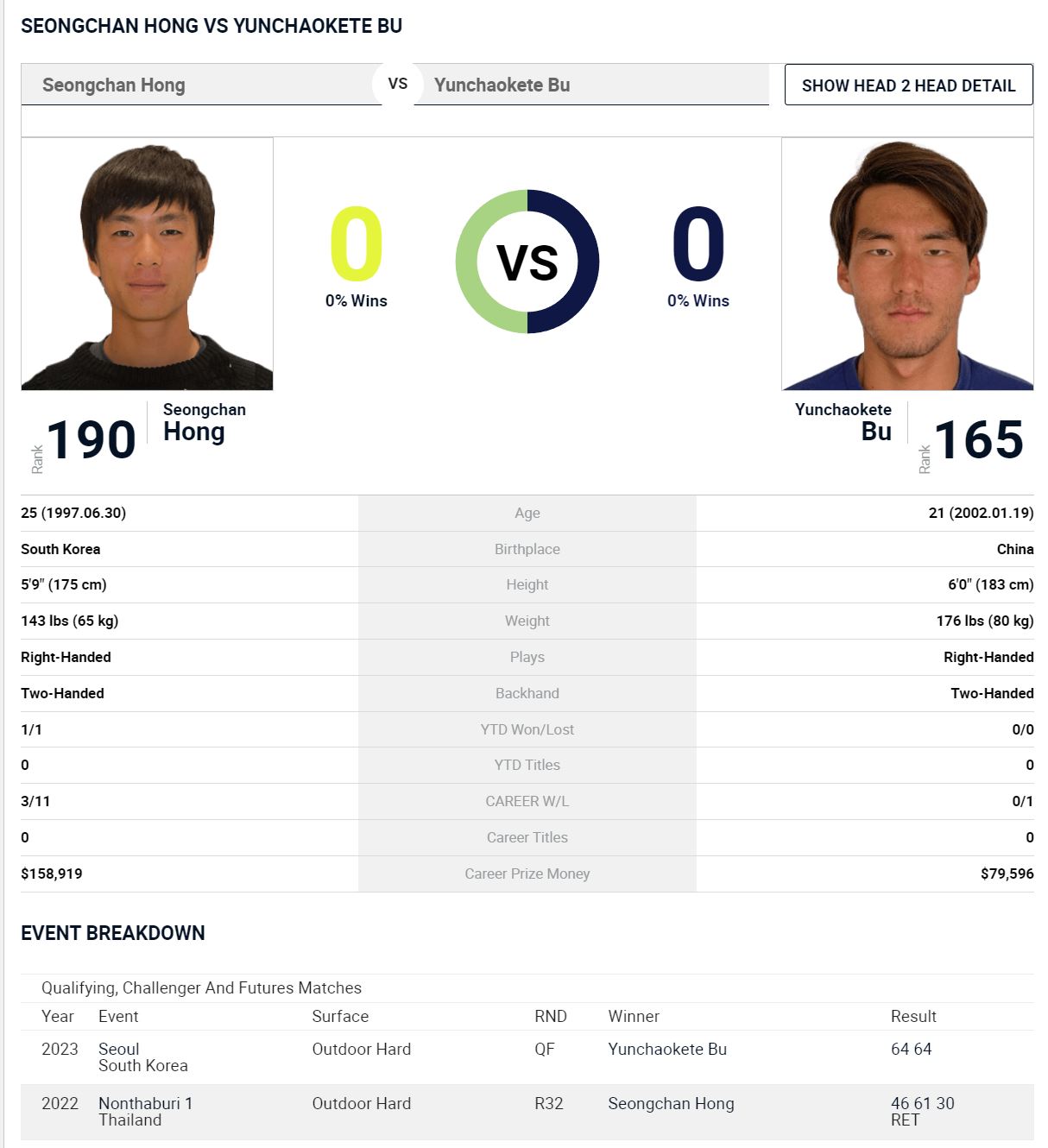 테니스, 2023 로스시오픈챌린저 ATP125 32강 홍성찬 VS 부 윤차오테케