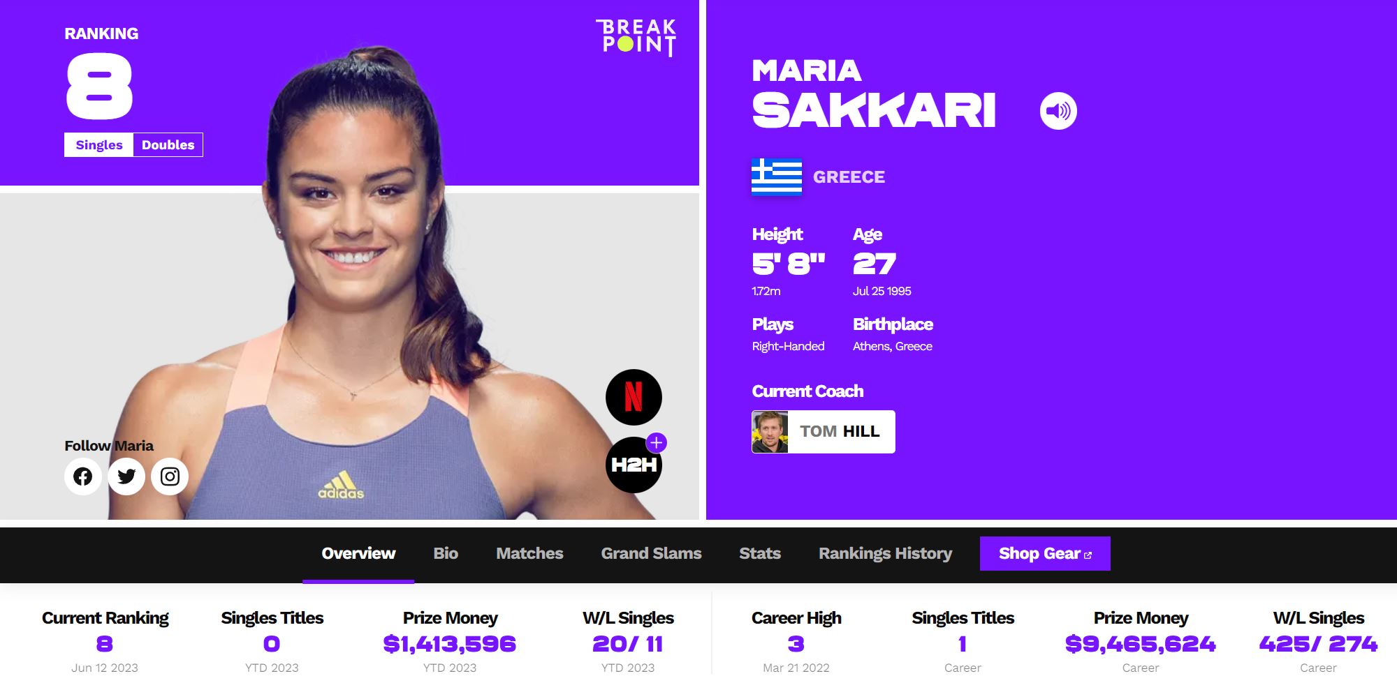 마리아 사카리가 역대 전적에서 앞서고 있습니다.