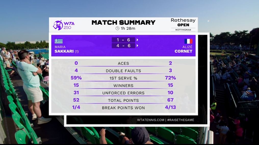 테니스, 2023 Rothesay Open WTA250 Round of 16 MariaSakkari vs AlizéCornet