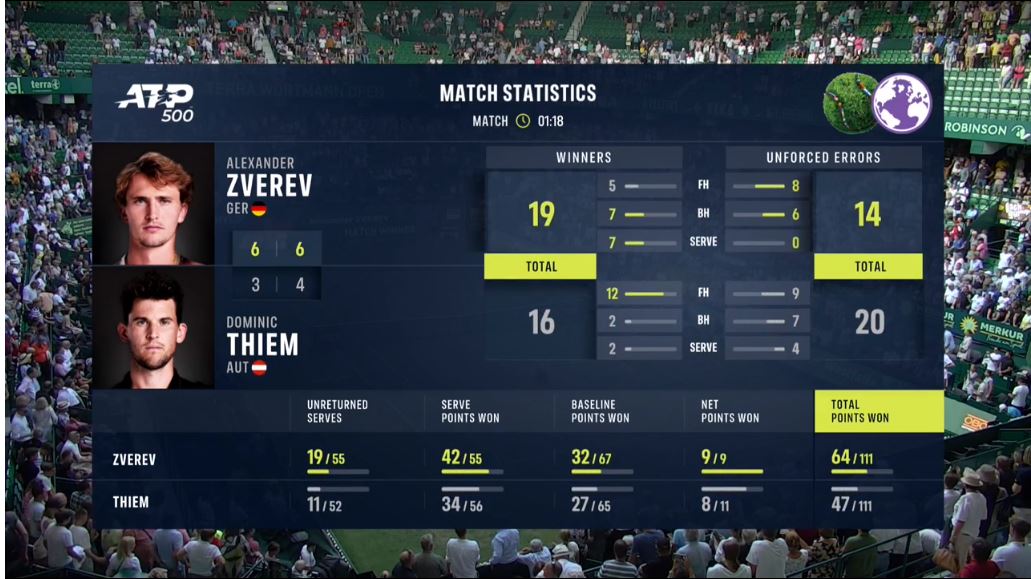 전반적으로 즈베레프 선수가 많이 앞서는 경기를 보여 주었습니다.