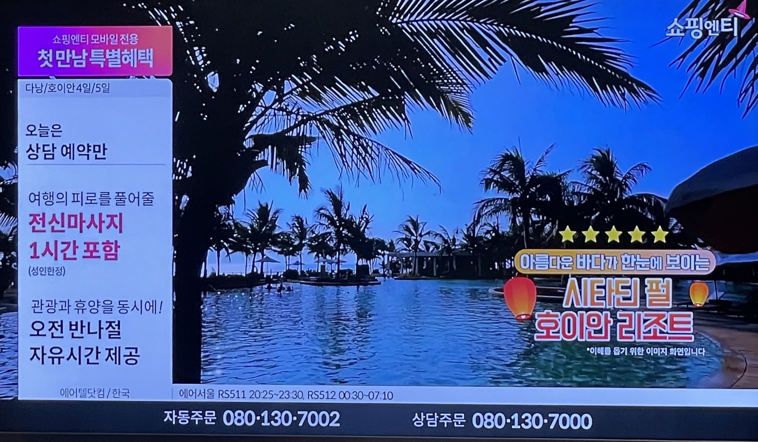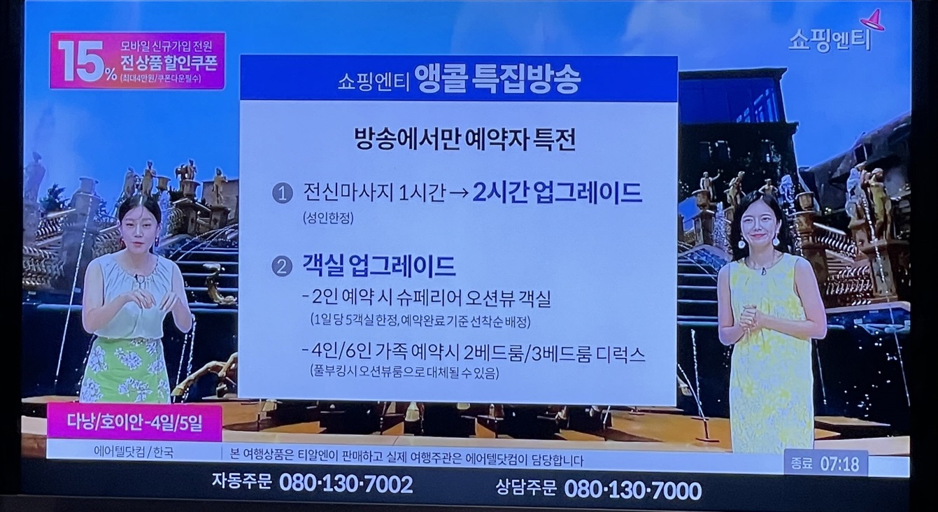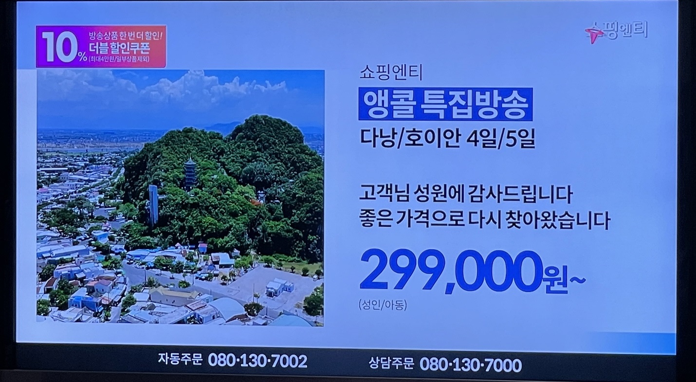 계속 홈쇼핑에서 다낭/호이안 여행 상품이 판매되고 있습니다.