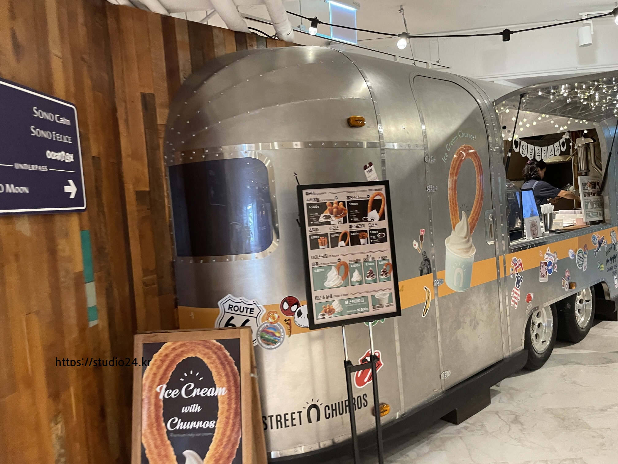 중간에 먹거리가 많았어요.