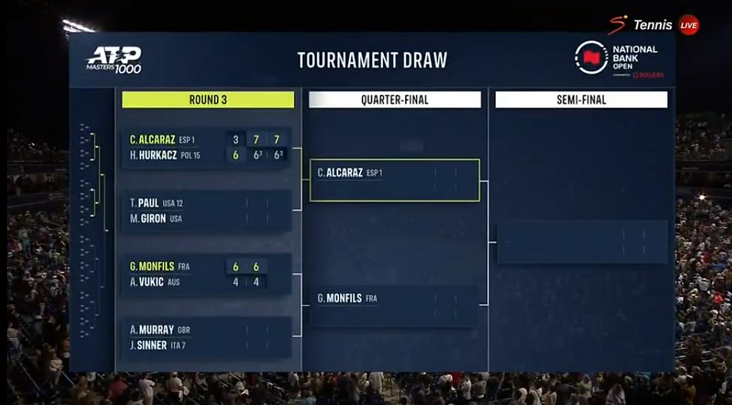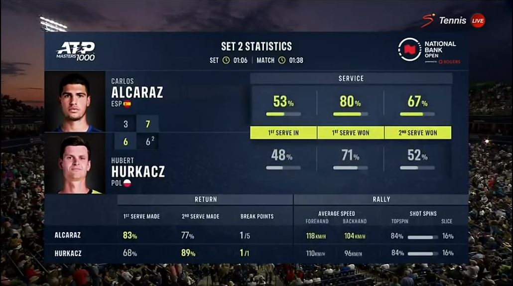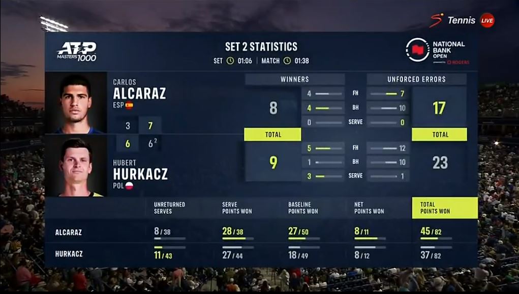 테니스, 2023 Canada Masters ATP1000 R16 CARLOS ALCARAZ VS. HUBERT HURKACZ
