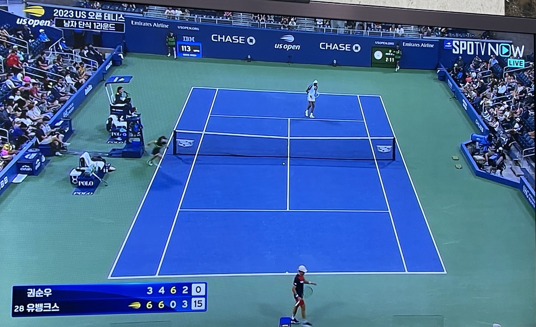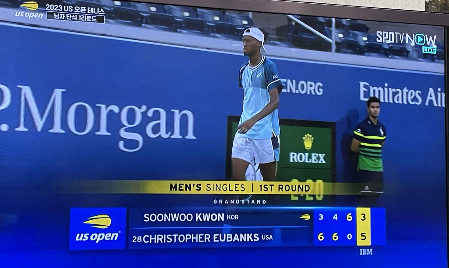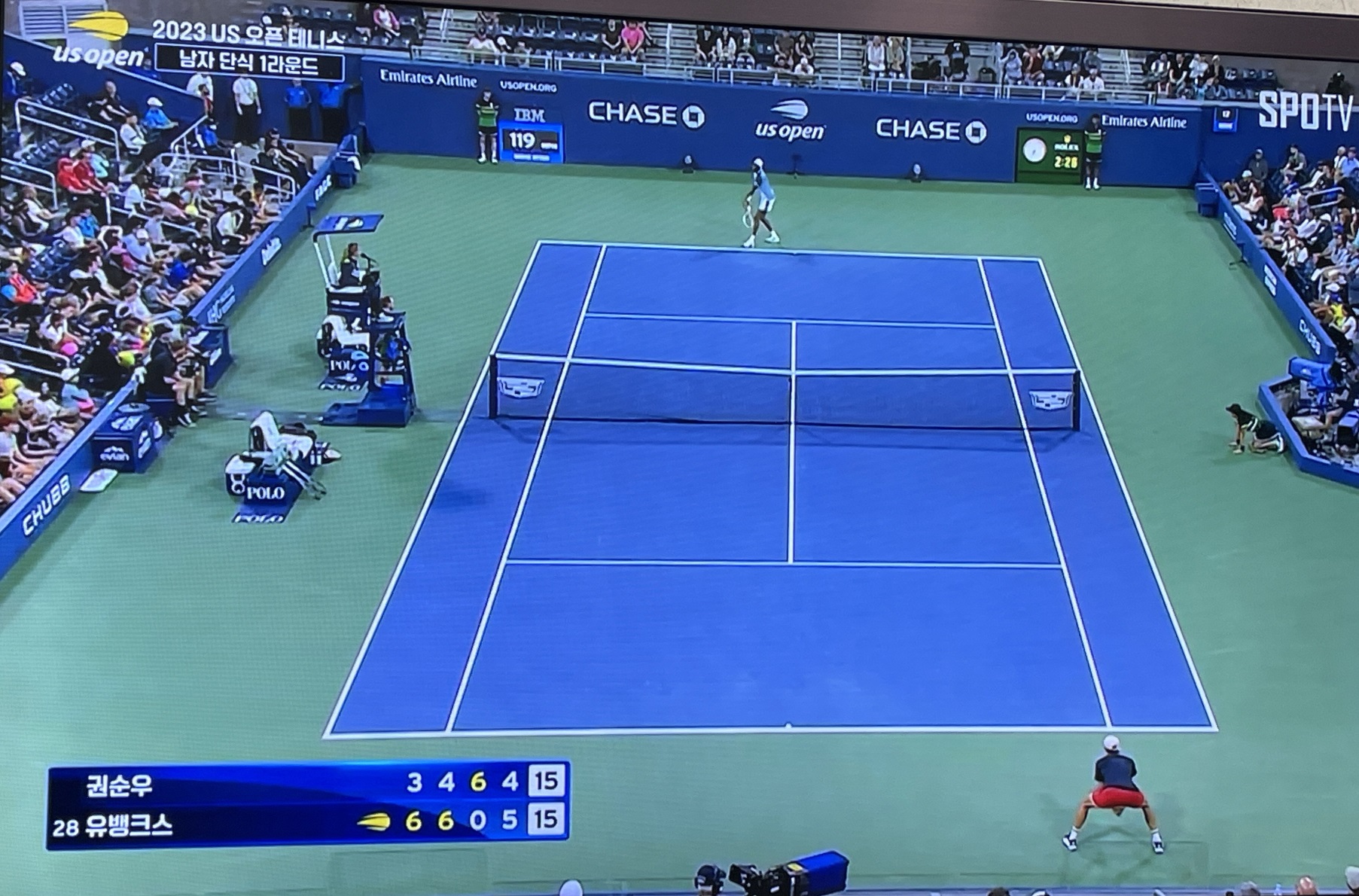 권순우 선수의 본선 1회전 경기는 스포 TV 나우에서 라이브 방송으로 해주었습니다.