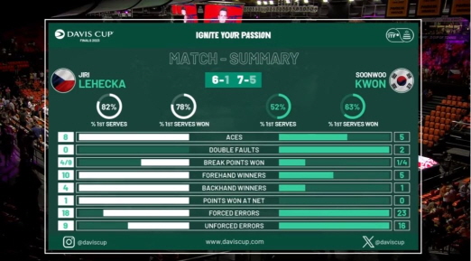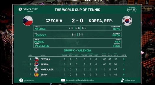 테니스, 2023 데이비스컵 파이널스 2차전 체코 VS 한국