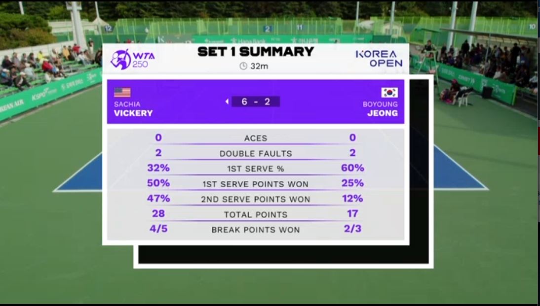 테니스, 2023 WTA250 KOREA OPEN 예선 1차전 정보영 VS 사치아 비커리