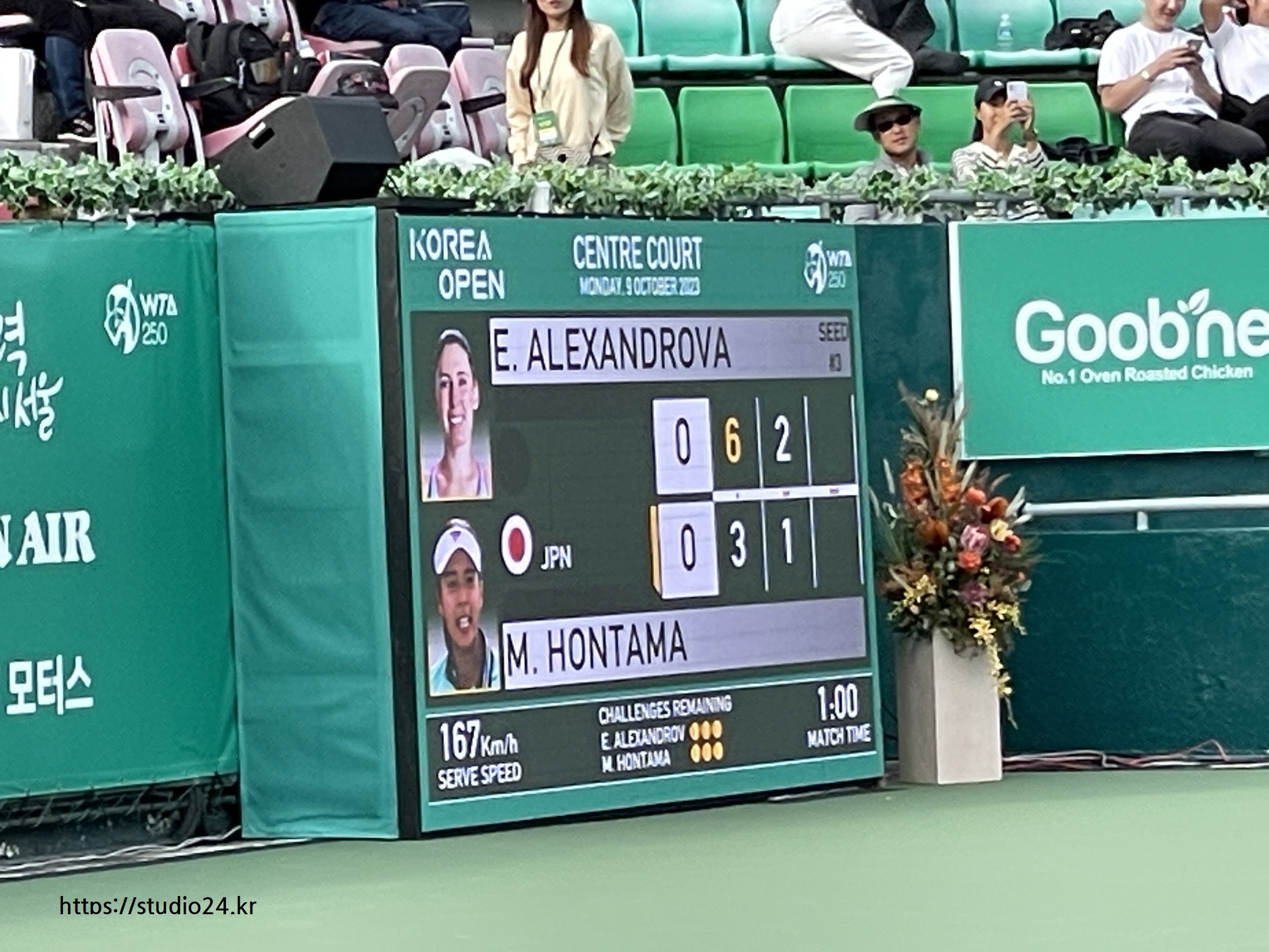 테니스, 2023 WTA250 KOREA OPEN 1회전 알렉산드로바 VS 혼타마 마이